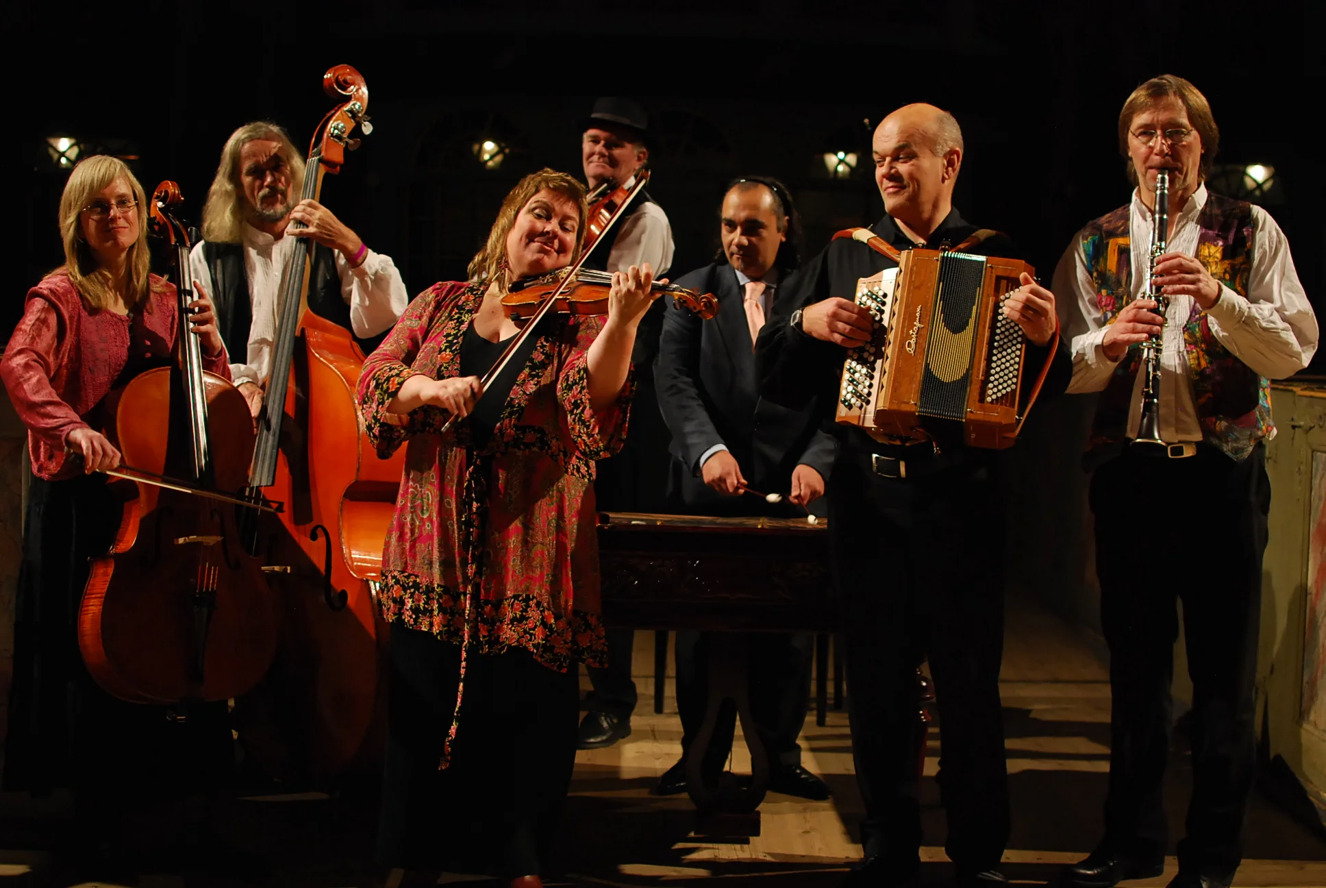 Gjertuds sigøynerorkester - det er seks nordmenn og en ungarsk sigøyner, alle så fylt av boblende musikk fra Ungarn, Romania og Russland og Sigøynerland at det spruter helt over, og gir oss andre en herlig dusj. Orkesteret passerer nå 25 år, og har hele tiden vært ledet av damen med Vestlandets bredeste glis: karismatikeren og vilolinfantomet Gjertrud Økland, med en tone så varm at piggsveis blir krøller og hanekam blir høysåte. Hun har med seg den ungarske virtuosen Ernest Bango (cimbalom), Helene Waage (cello, sang), Pål Torstensen (kontrabass), Georg Reiss (klarinett, tárogáto), Tom Karlsrud (trekkspill) og Trond Villa (bratsj).